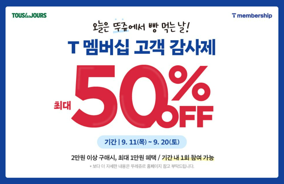- SKT 고객이면 뚜레쥬르 빵 50% 할인 가능