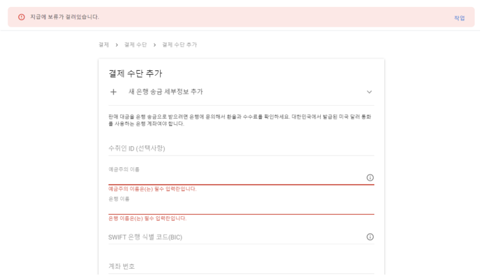 구글 애드센스 수익이 100달러를 초과하면 계좌를 등록해 입금 받을 수 있다.