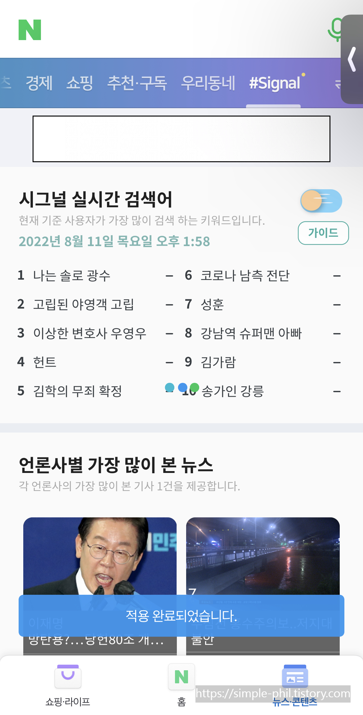 실시간 검색어 확인하는 방법